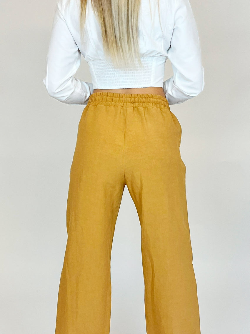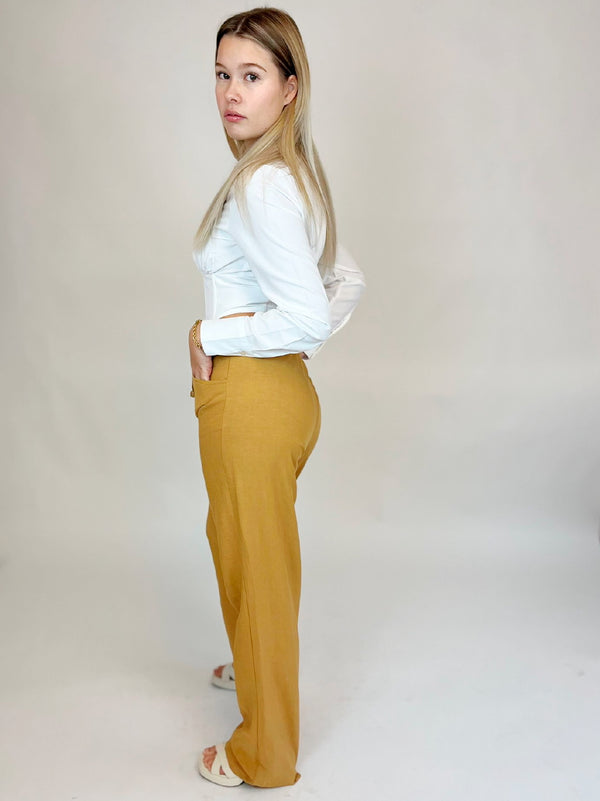 ONLY M - Lino Viscosa, Straight Fit, High Waist, Camel