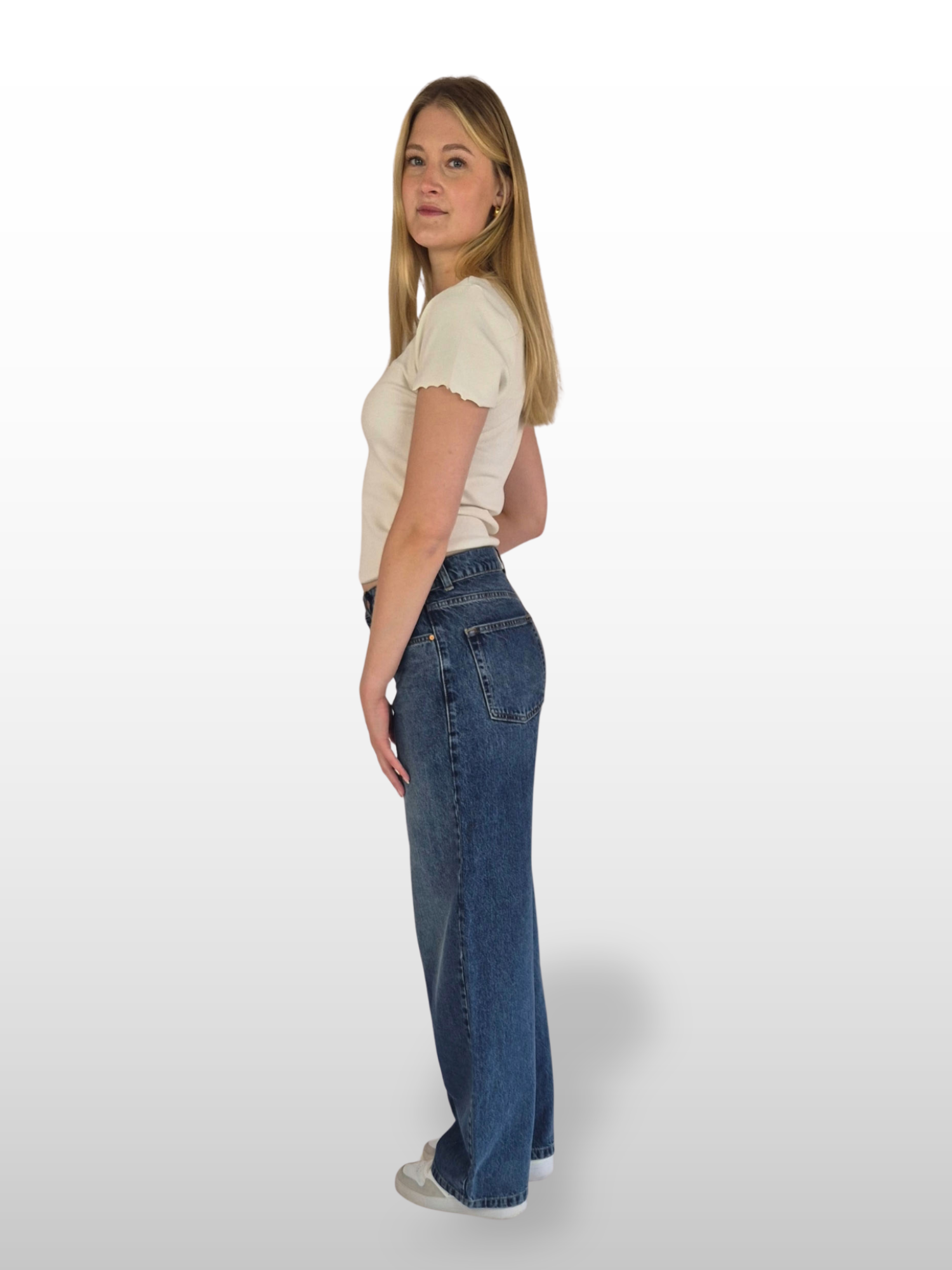 Der lässige Schnitt erinnert an klassische Skaterjeans der 90er-Jahre und sorgt für ein cooles, urbanes Erscheinungsbild. Durch den hohen Bund sitzt die Jeans perfekt an der Taille und formt eine entspannte, dennoch feminine Silhouette. Ihre extra-lange Passform verleiht ihr einen modernen Look, der besonders bei großen Frauen optimal wirkt.