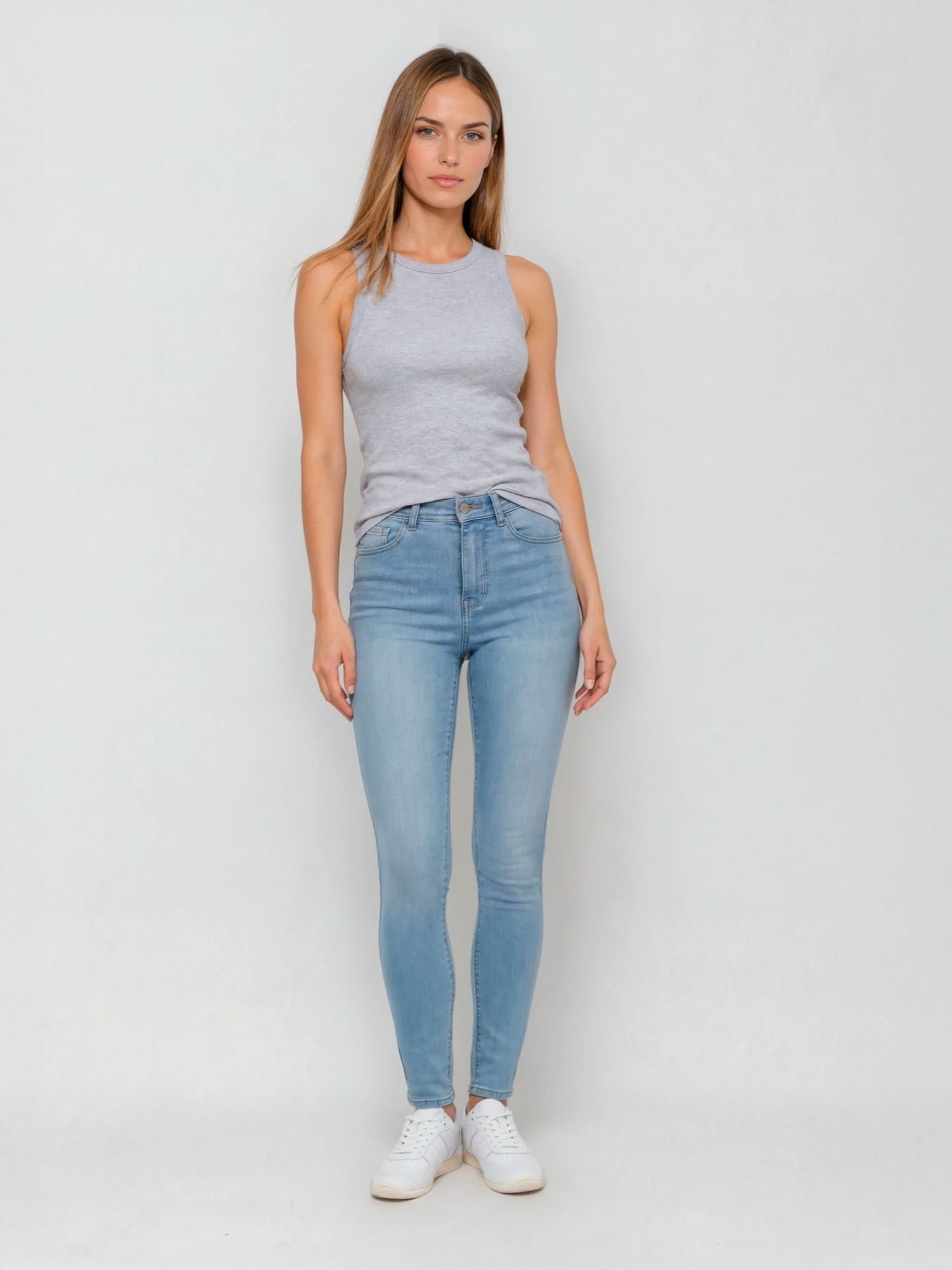 Gefertigt aus superweichem Power-Stretch Denim, schmiegt sich die Jeans wie eine zweite Haut an und bietet gleichzeitig maximale Bewegungsfreiheit. Die sommerlich-helle Waschung verleiht ihr einen frischen, modernen Look, der sich vielseitig kombinieren lässt, ob mit High Heels für einen eleganten Auftritt, Sneakern für den Alltag oder Stiefeln für die kühleren Tage.