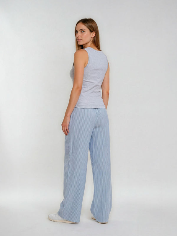 Bogilvy - CLARA, Wide Leg, Sommerhose, High-Waist, Blue / White Stripes
