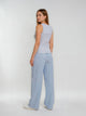 Das dezente Streifendesign in Blau und Weiß verleiht der Hose eine frische, maritime Optik. Durch den lockeren, geraden Schnitt und die tiefer sitzende Leibhöhe (Low Waist) entsteht ein moderner Look, der sich vielseitig kombinieren lässt. Ob mit einem weißen Crop-Top, einem luftigen Oversize-Hemd oder Sandalen, mit der CLARA Sommerhose kreierst du mühelos einen lässigen, trendbewussten Sommer-Look.