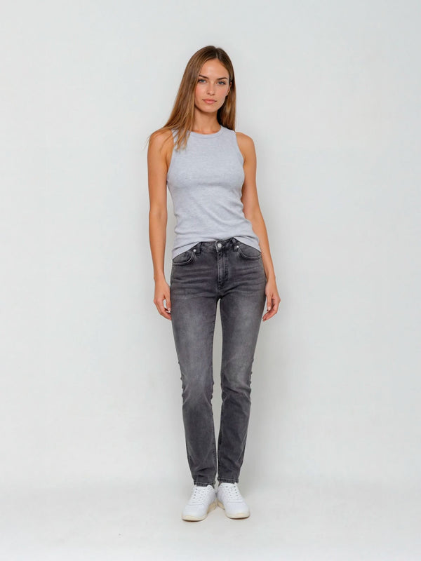 SCREVET - DILLY, Straight Fit, Mid-Waist, Grey Black