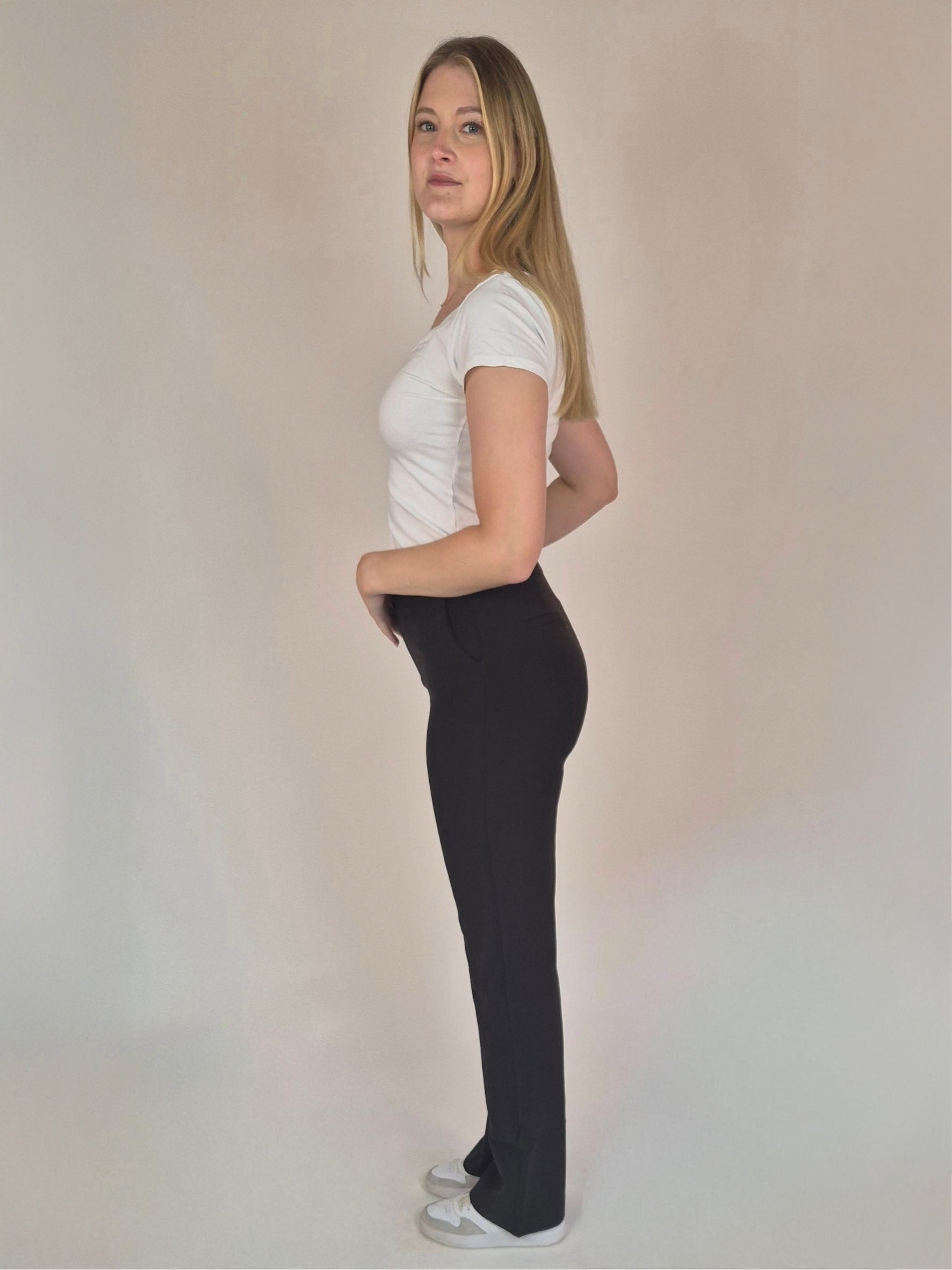 Extra lange Damen Businesshose mit gerade geschnittenem Bein und hoher Leibhöhe.