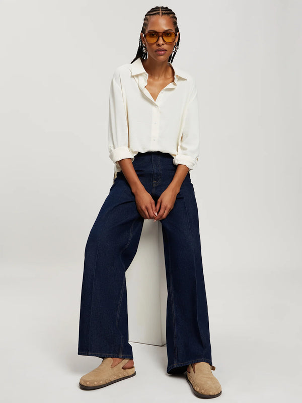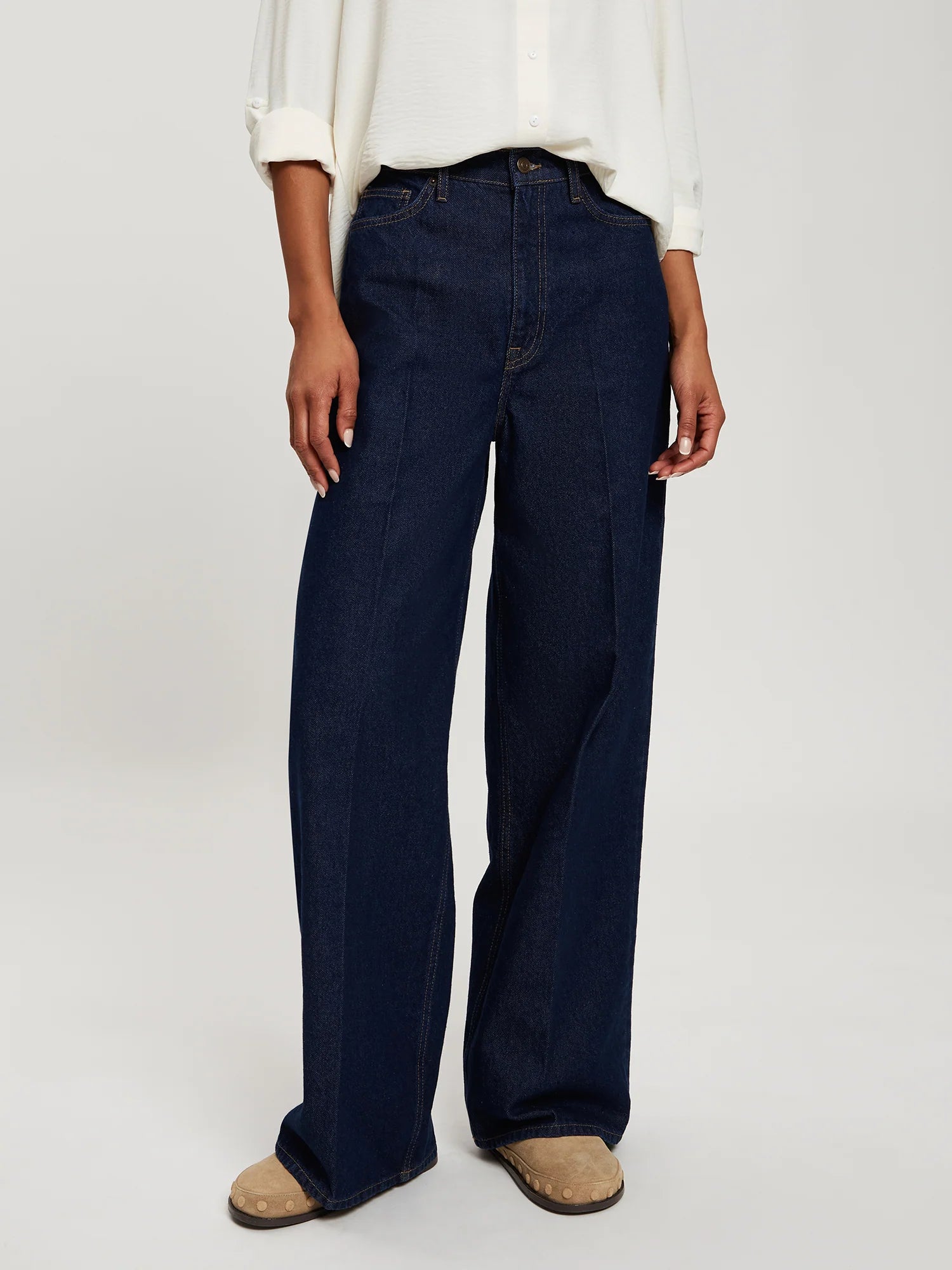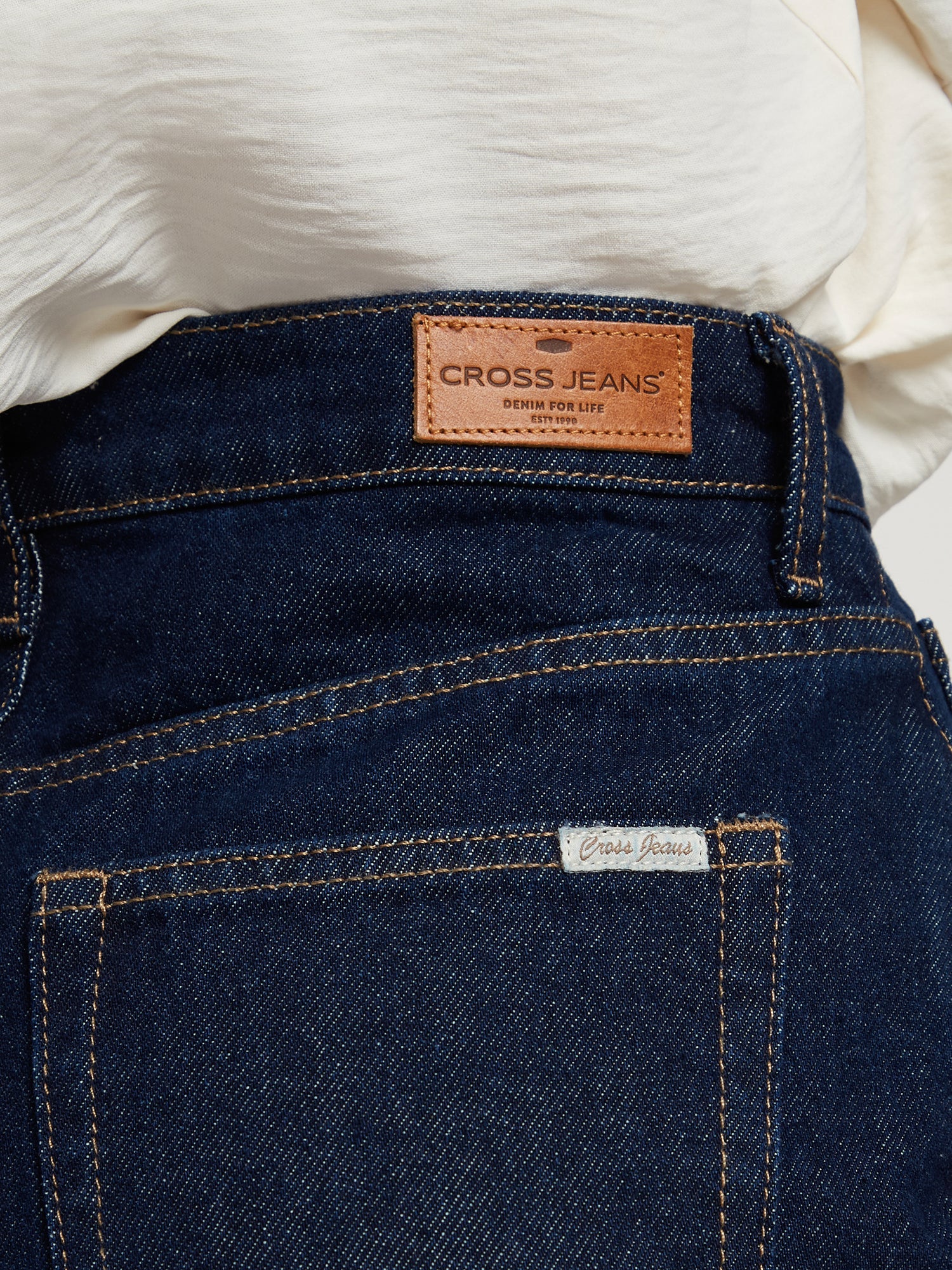 CROSS JEANS - Wide Leg, Damen Jeans, Flare Fit, Mid Waist, Dark Blue