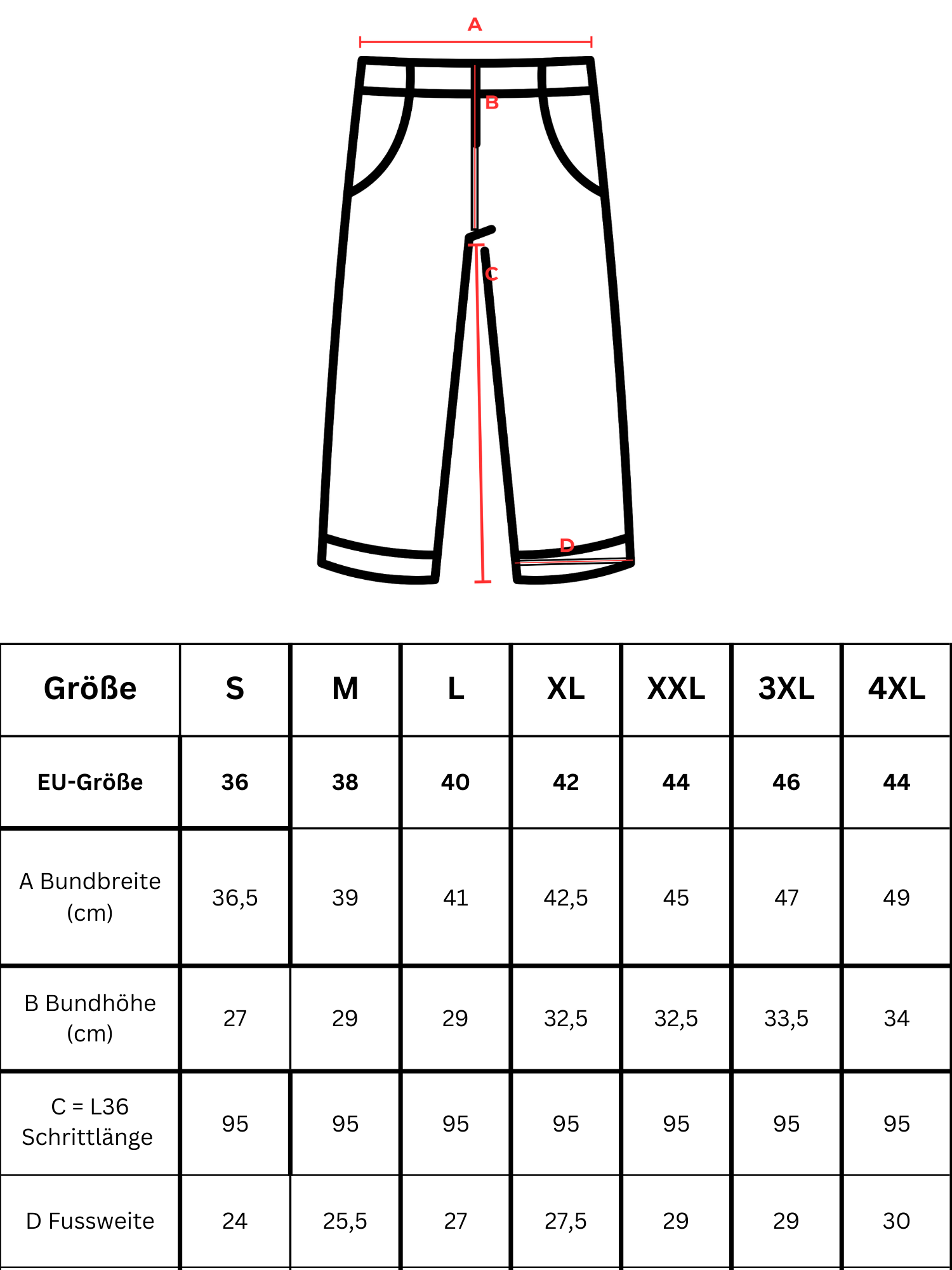 L36: Innenbeinlänge ca. 95 cm