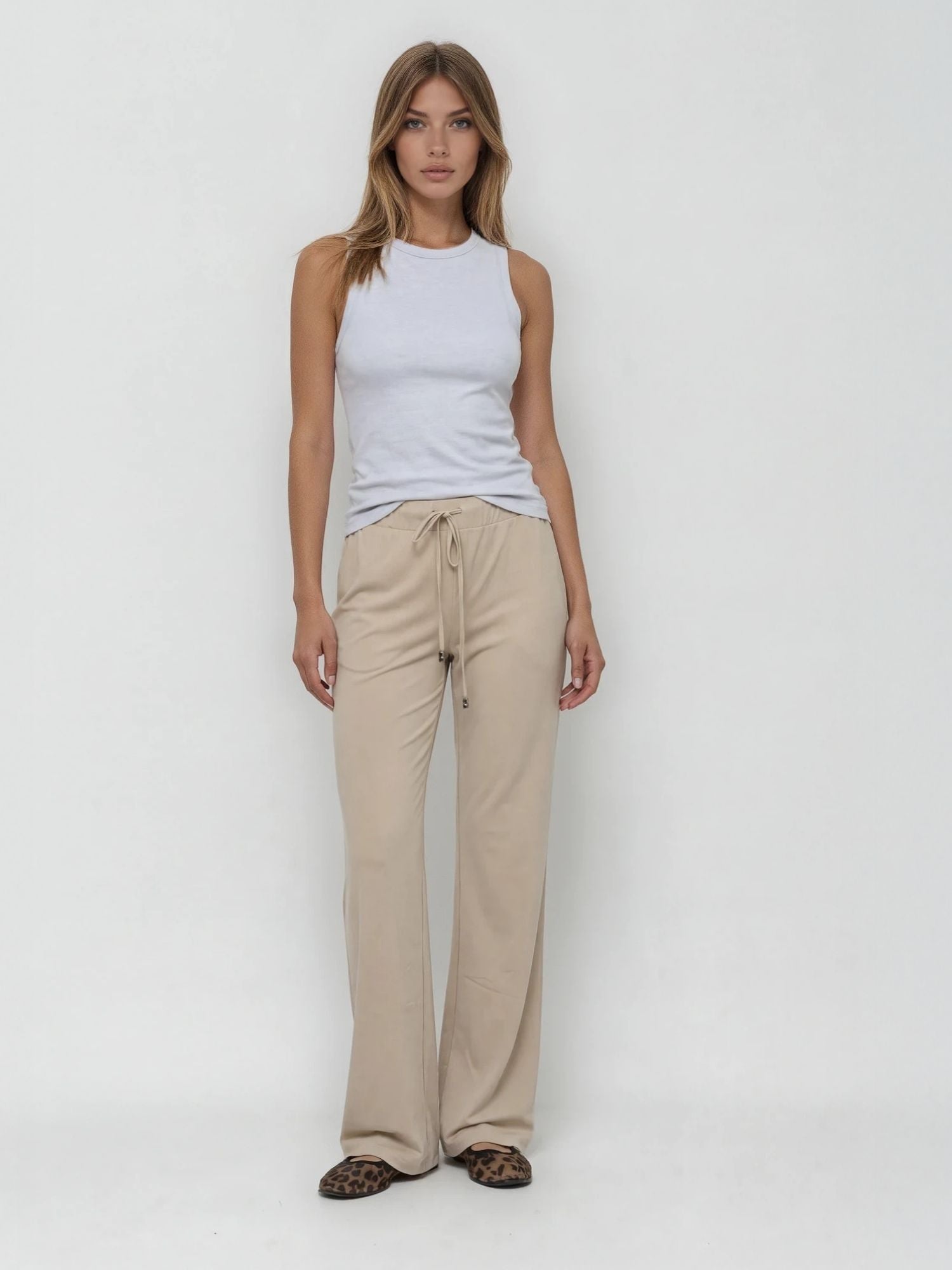 ONLY M - Sporty Chic Hose, Straight Leg, High Waist, Sabbia