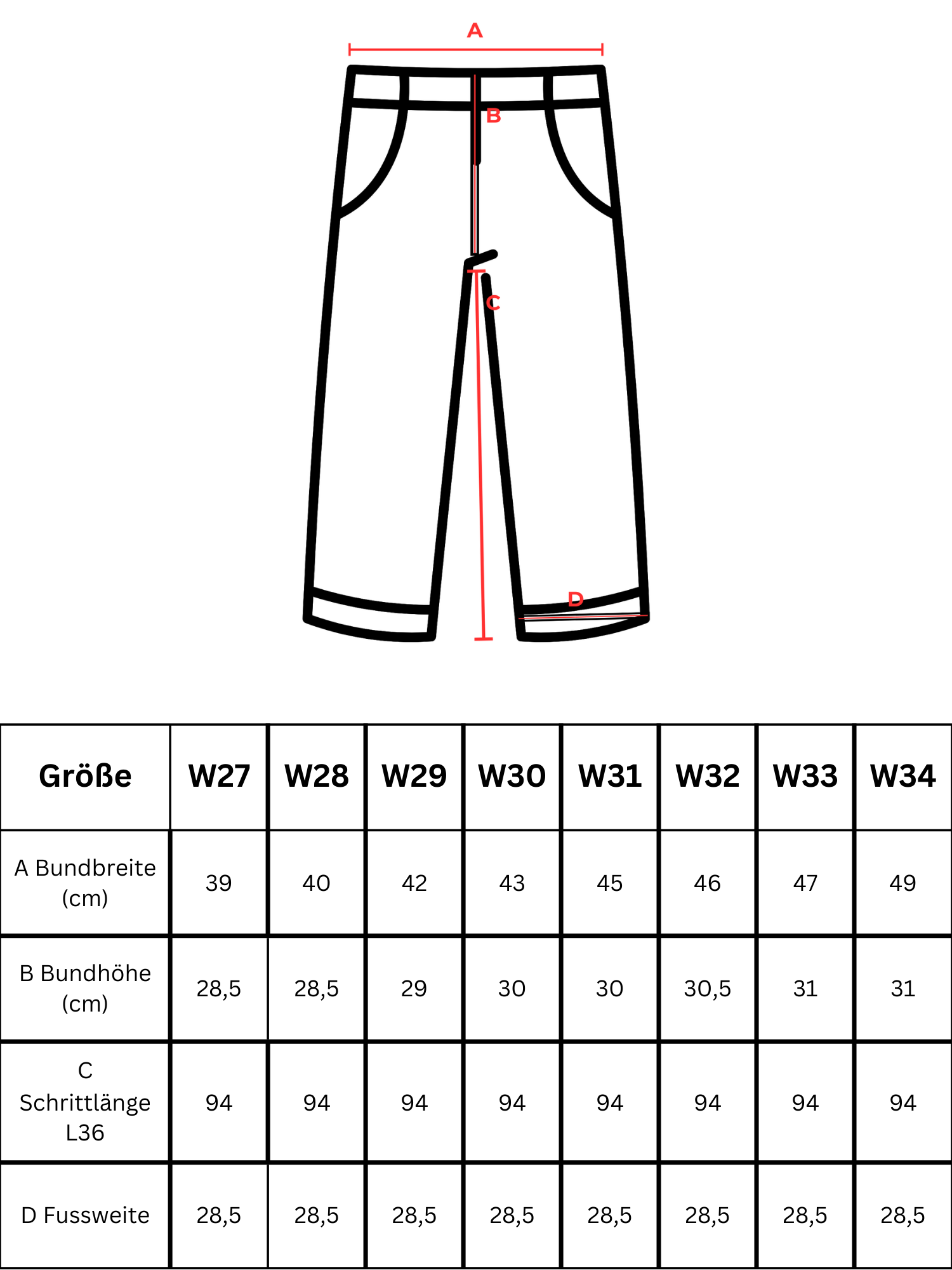 L36: Innenbeinlänge ca. 94 cm