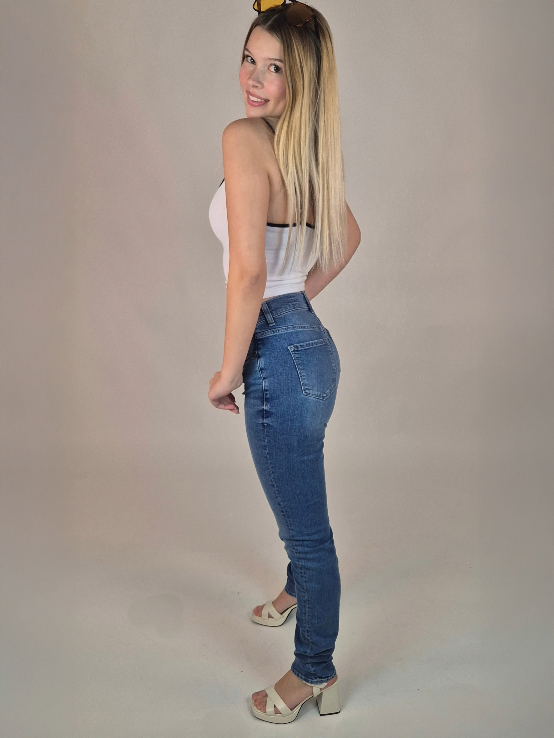 Die Jeans bietet eine figurnahe Skinny Fit Passform mit mittlerer Leibhöhe, die das Bein optisch verlängert und eine schlanke Silhouette formt.