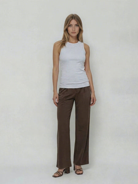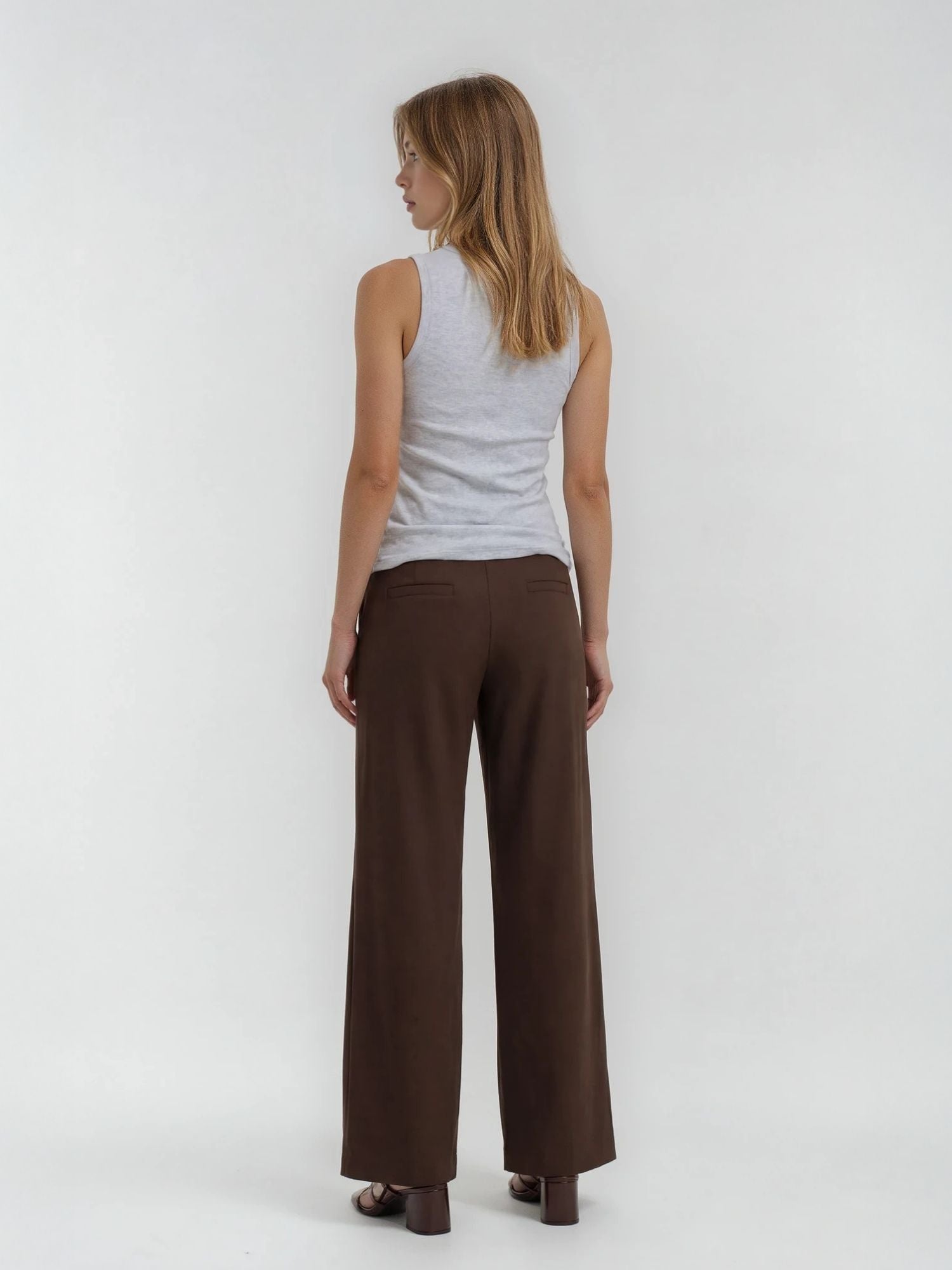 Diese braune Anzugshose für Damen überzeugt durch ihr sehr weiches, fließendes Material und einen besonders angenehmen weichen Griff. Der hochwertige Stoff sorgt für einen eleganten Fall und ein komfortables Tragegefühl – ideal für den Business-Look, das Büro oder stilvolle Freizeit-Outfits. Der mittelhohe Bund mit Gürtelschlaufen sitzt bequem auf der Taille und ermöglicht vielseitige Styling-Optionen mit Gürtel oder Blazer.