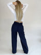 Bogilvy - SIERRA, Leinenhose, Straight-Fit, High-Waist, Dark Navy