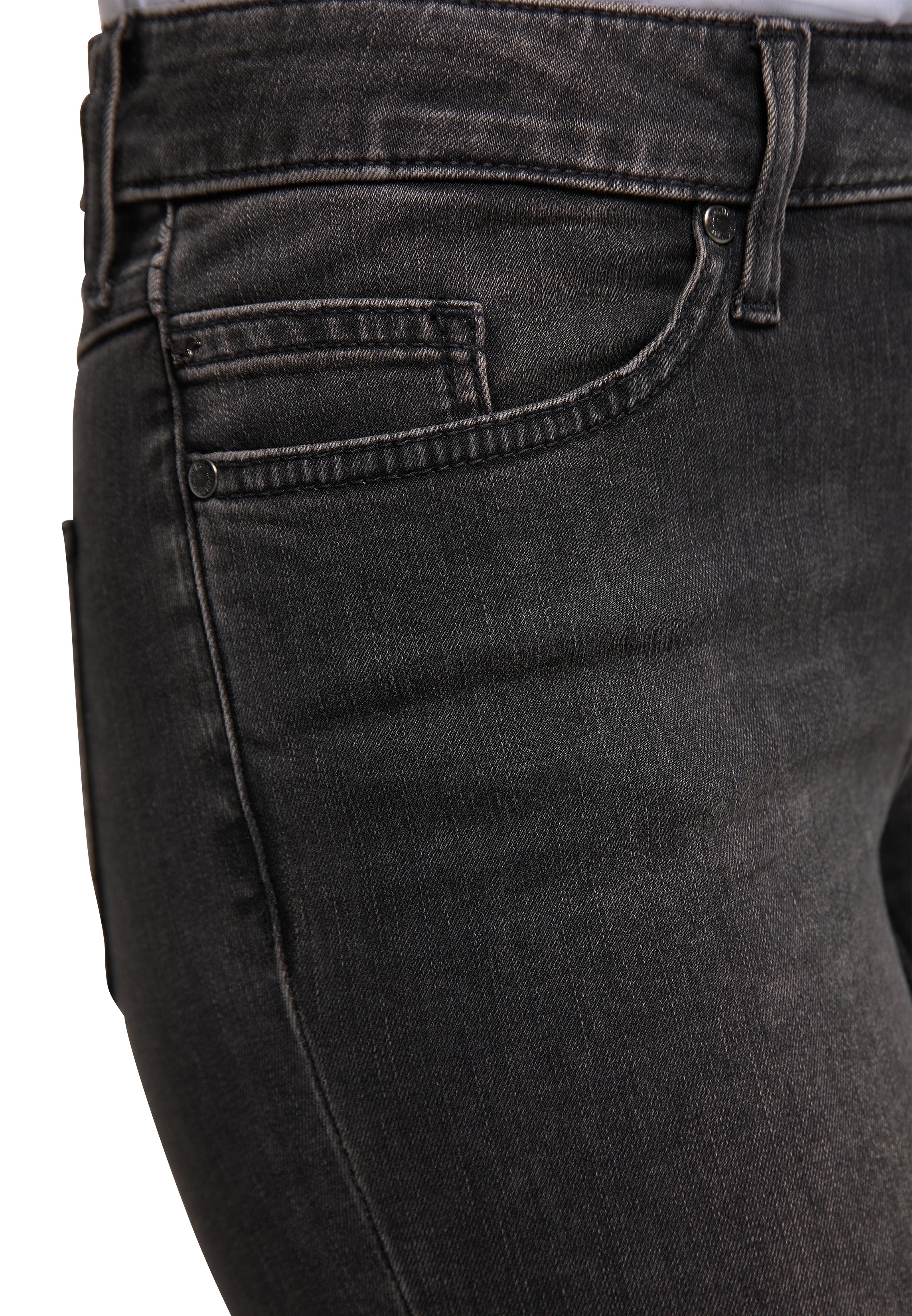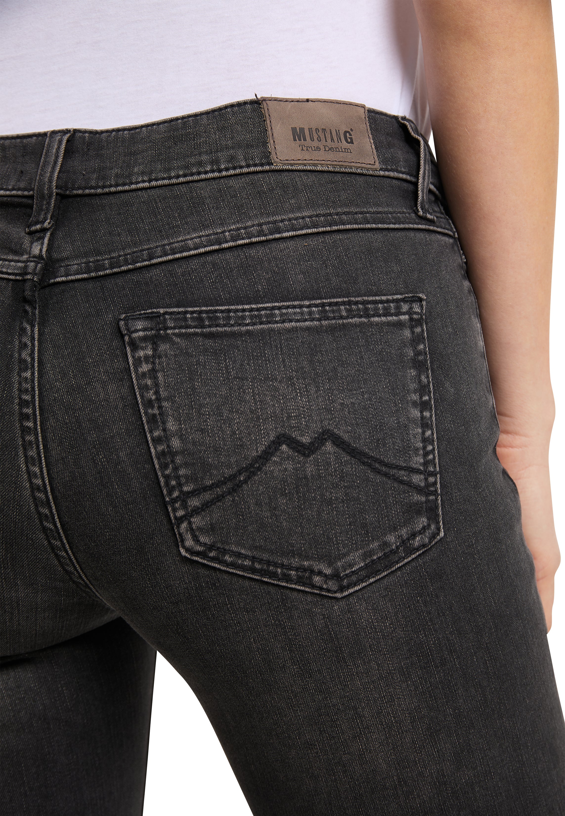 Die Mustang Jeans Jasim Jegging in Schwarz Used überzeugt als moderne, vielseitige Slim Fit Jeans mit geradem Beinverlauf und mittlerer Leibhöhe. Dank ihres komfortablen, elastischen Denim-Materials bietet sie eine perfekte Kombination aus hohem Tragekomfort, optimaler Bewegungsfreiheit und einem schlanken, femininen Look.