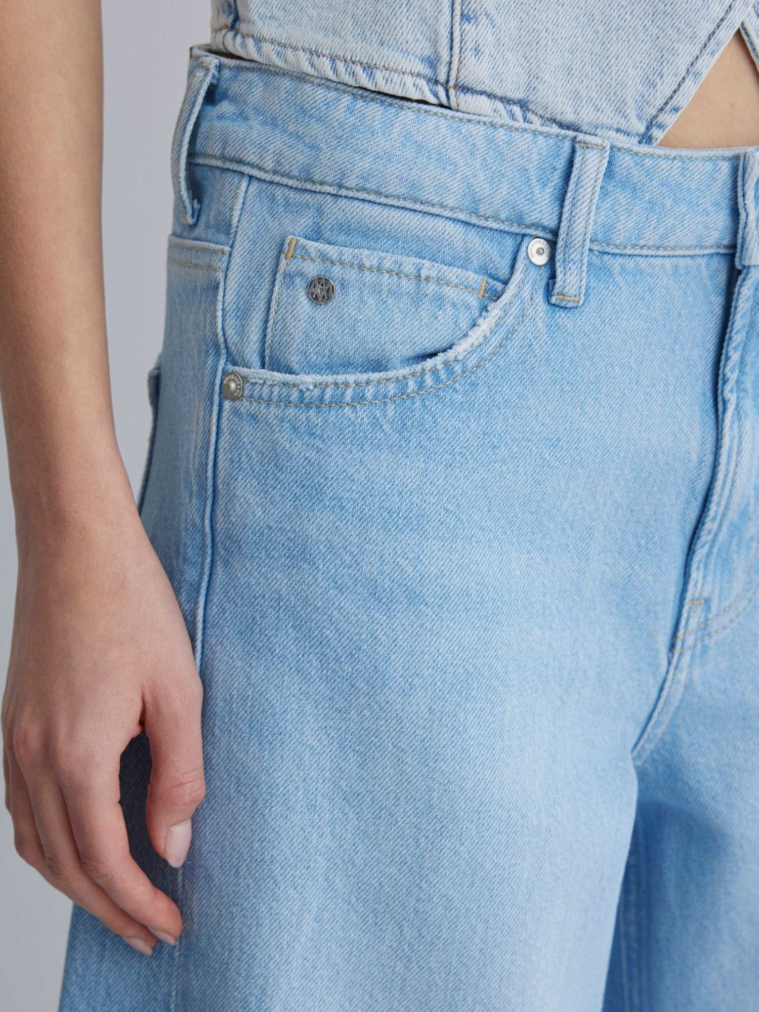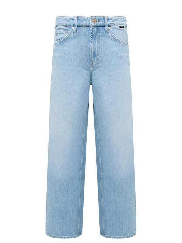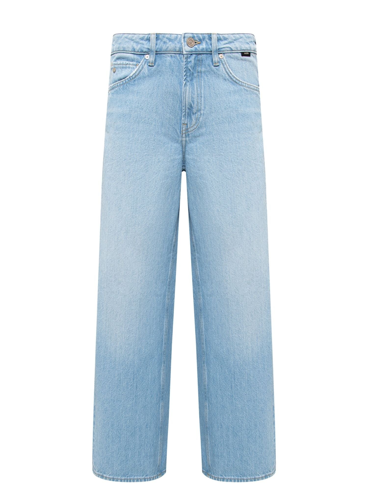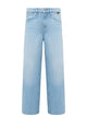 Das kernige Denim-Material in hellblauer Vintage-Waschung (Lt. Blue Denim) verleiht der Jeans eine authentische Ausstrahlung, perfekt für alle, die klassische Denim-Optik mit modernen Elementen verbinden möchten. Der hohe Bund formt eine schöne Taille und betont die Figur, während das weit geschnittene Bein für Leichtigkeit und einen schmeichelhaften Fall sorgt.